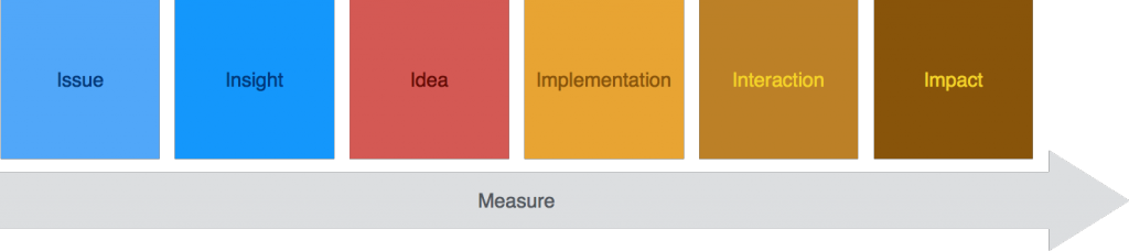 After the project is implemented, the performance criteria defined in the business objectives are measured and the Interaction and Impact stages are optimized in line with the feedback.