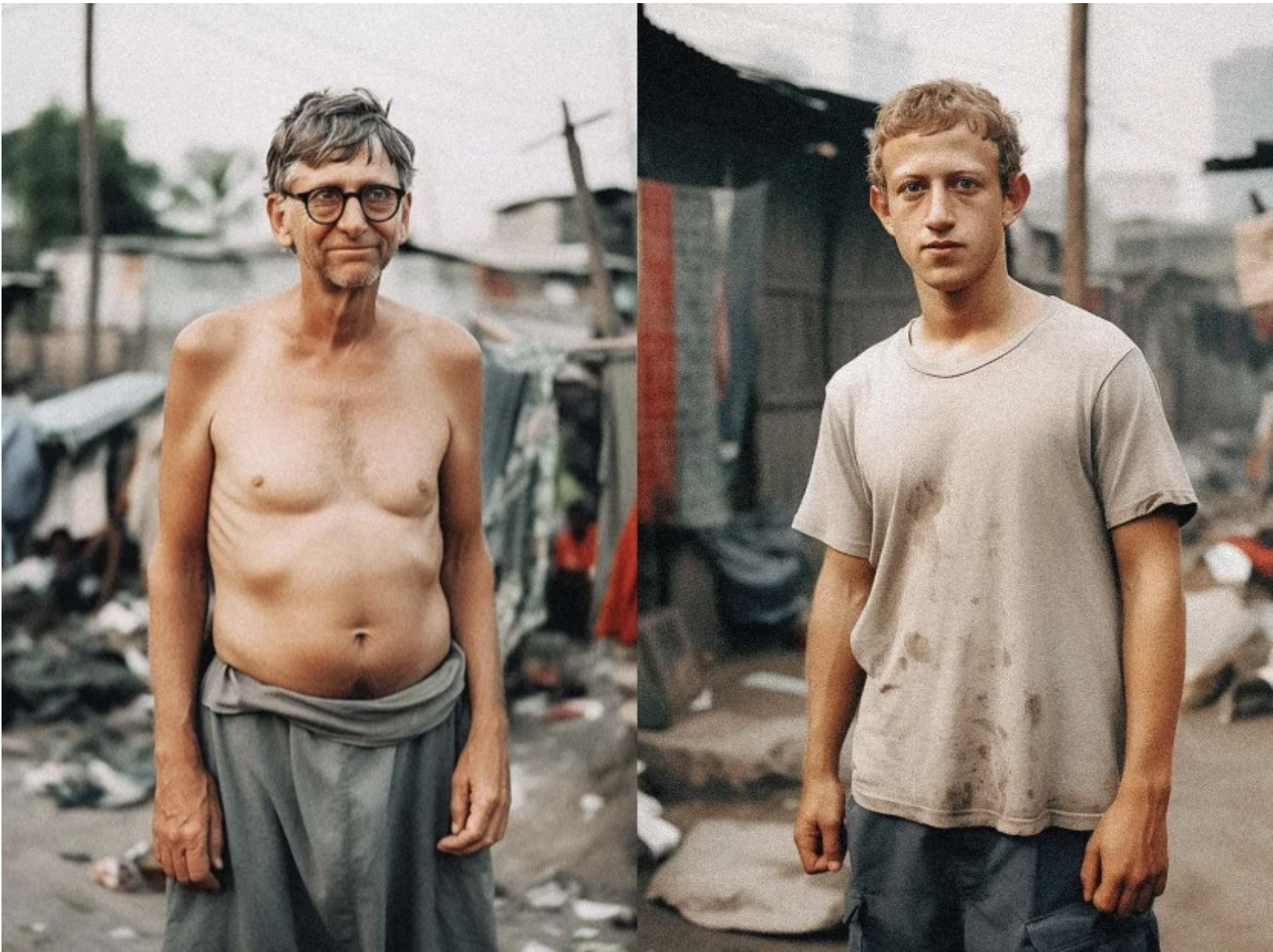 Dünyanın en zenginleri, yoksulluk içinde yaşadıkları alternatif bir evrende nasıl görünürlerdi? Midjourney yanıtlıyor.