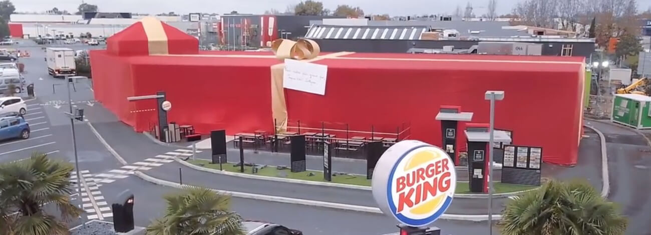 Burger King Fransa, sene boyunca Facebook’ta en çok yorum yapan hayranına teşekkür için tüm restoranı bir hediye paketiyle kaplayıp ufak bir sürpriz yaparak bu yılı ilginç bir kampanyayla sonlardırıyor.
